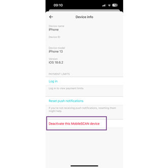 3. Open device information and click on Deactivate this MobileSCAN device.